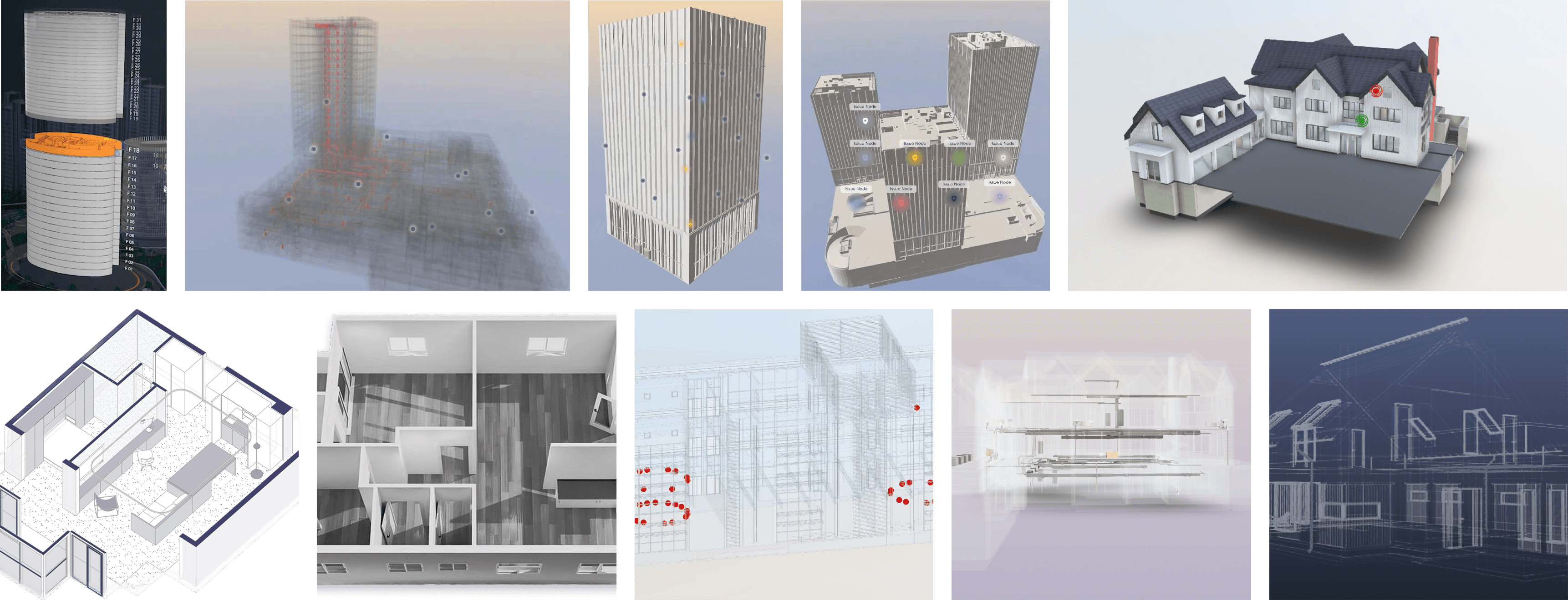 • Revit models contained dense parametric metadata but inconsistent coordinate origins.
