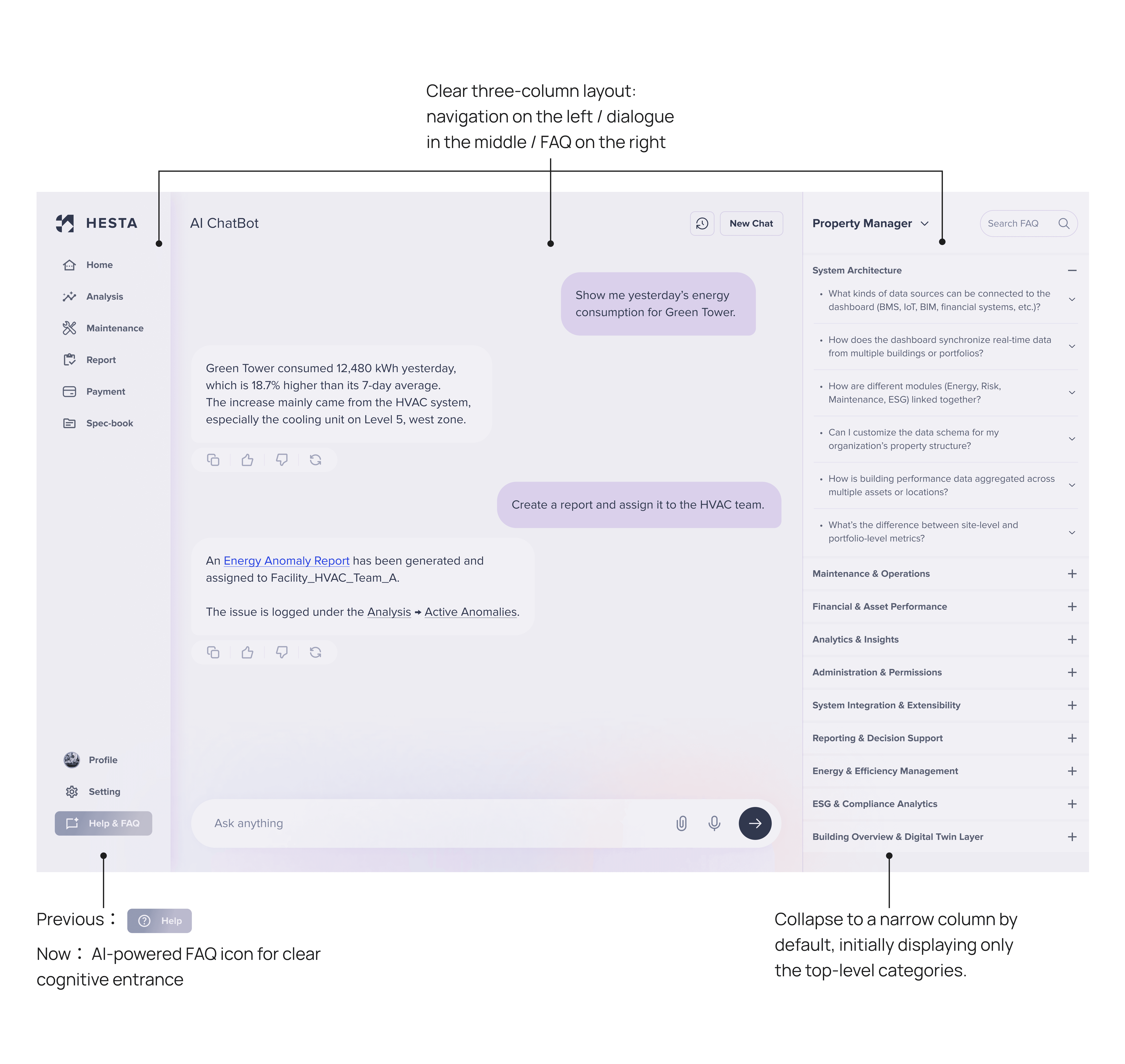 The subsequent version simplified the display of frequently asked questions, unified the metadata structure, and introduced role filtering, making the interface more focused, professional, and more in line with daily workflows.